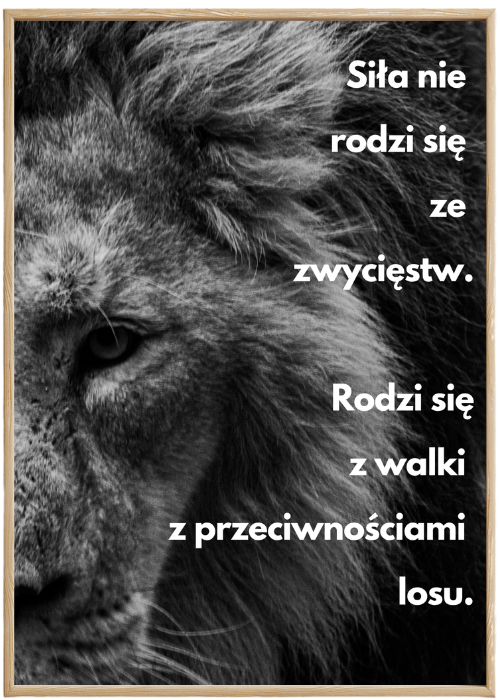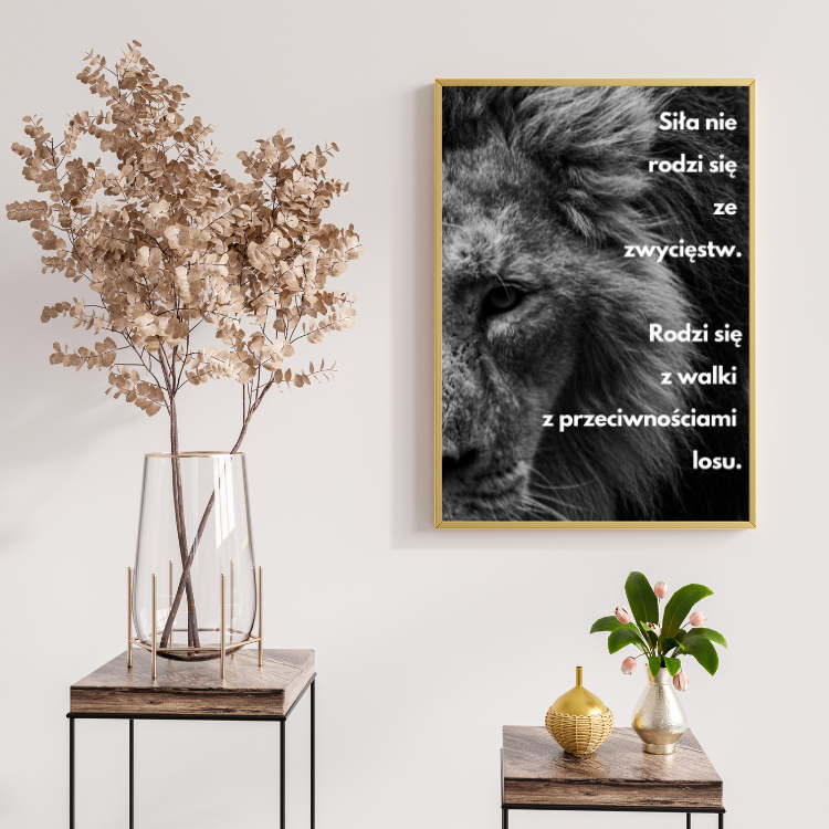 Plakat Siła to połączenie estetyki, trwałości i stylu. Motyw oraz staranność wykonania sprawiają, że będzie cieszyć oko przez wiele lat i stanie się wyjątkową dekoracją w Twoim wnętrzu.