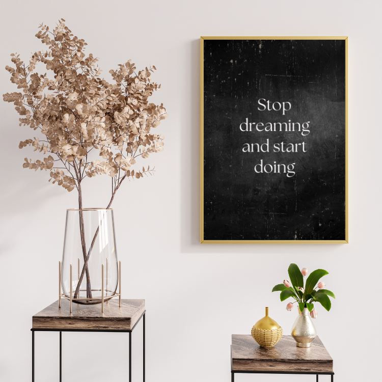 Plakat Stop Dreaming Start Doing to połączenie estetyki, trwałości i stylu. Motyw oraz staranność wykonania sprawiają, że będzie cieszyć oko przez wiele lat i stanie się wyjątkową dekoracją w Twoim wnętrzu.