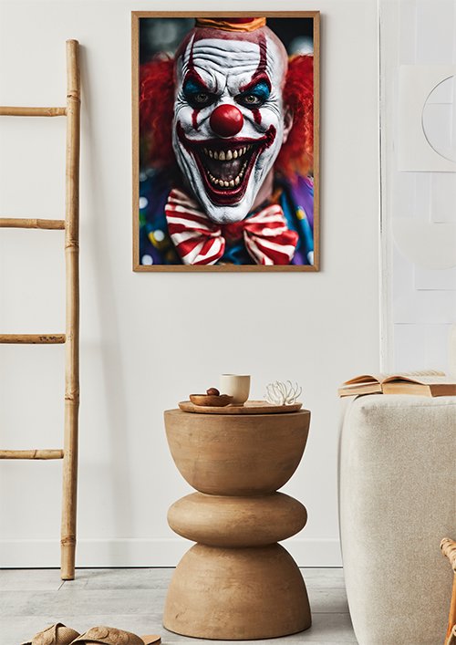 Plakat Straszny klaun 13 to połączenie estetyki, trwałości i stylu. Motyw oraz staranność wykonania sprawiają, że będzie cieszyć oko przez wiele lat i stanie się wyjątkową dekoracją w Twoim wnętrzu.