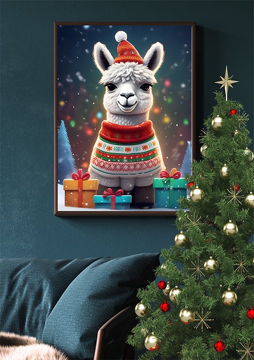 Plakat Świąteczna lama
