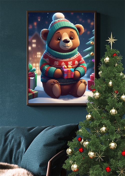 Plakat Świąteczny miś 4 to połączenie estetyki, trwałości i stylu. Motyw oraz staranność wykonania sprawiają, że będzie cieszyć oko przez wiele lat i stanie się wyjątkową dekoracją w Twoim wnętrzu.