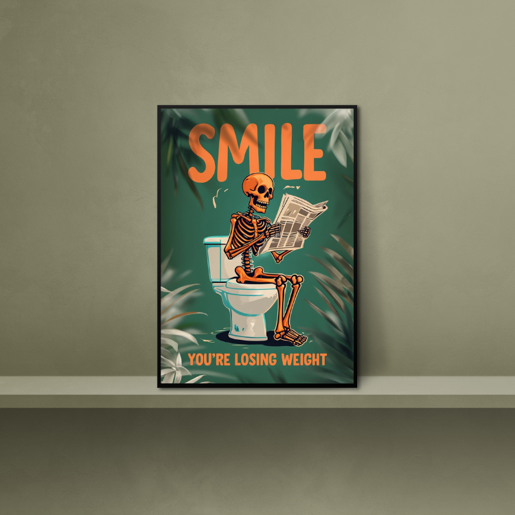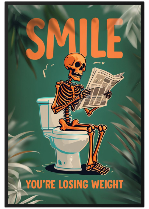 Plakat Uśmiechnij Się Chudniesz to ciekawa dekoracja ścienna, która świetnie sprawdzi się jako ozdoba do Twojego domu lub jako oryginalny prezent. Łatwy do oprawienia, dostępny w popularnych rozmiarach.