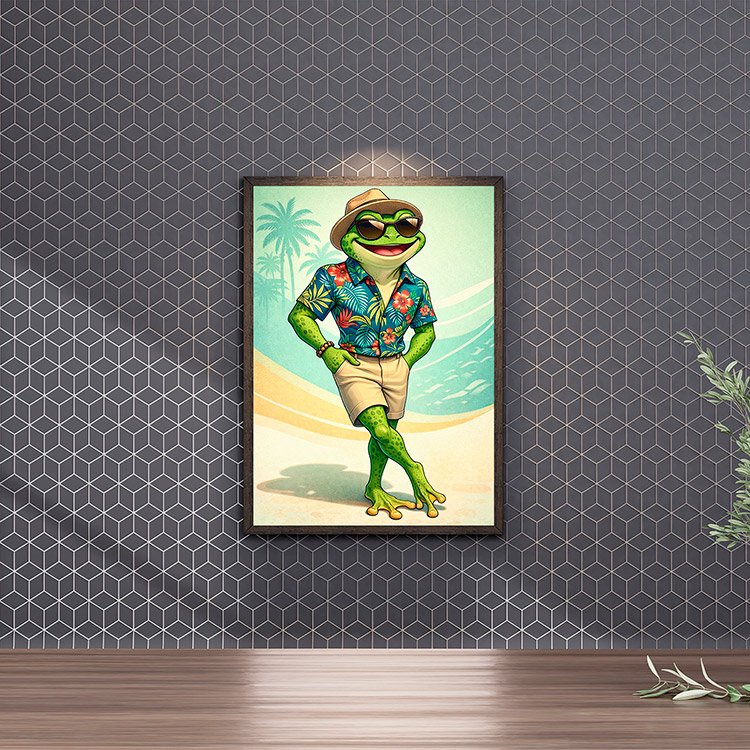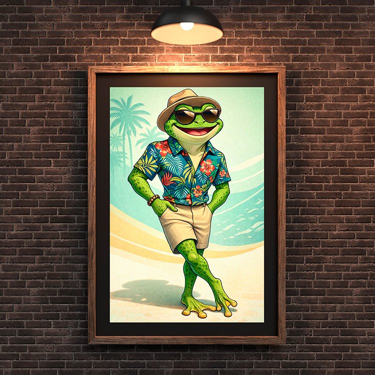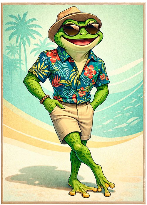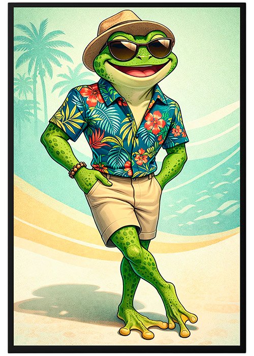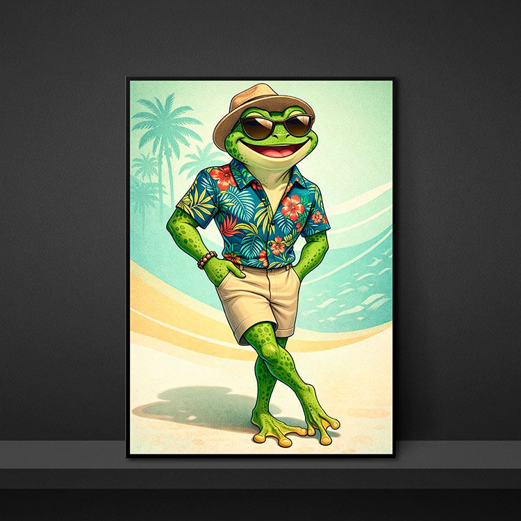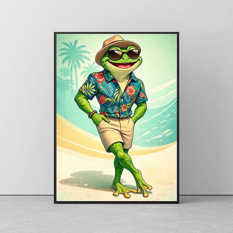 Plakat Żaba Na Wakacjach to ciekawa dekoracja ścienna, która świetnie sprawdzi się jako ozdoba do Twojego domu lub jako oryginalny prezent. Łatwy do oprawienia, dostępny w popularnych rozmiarach.