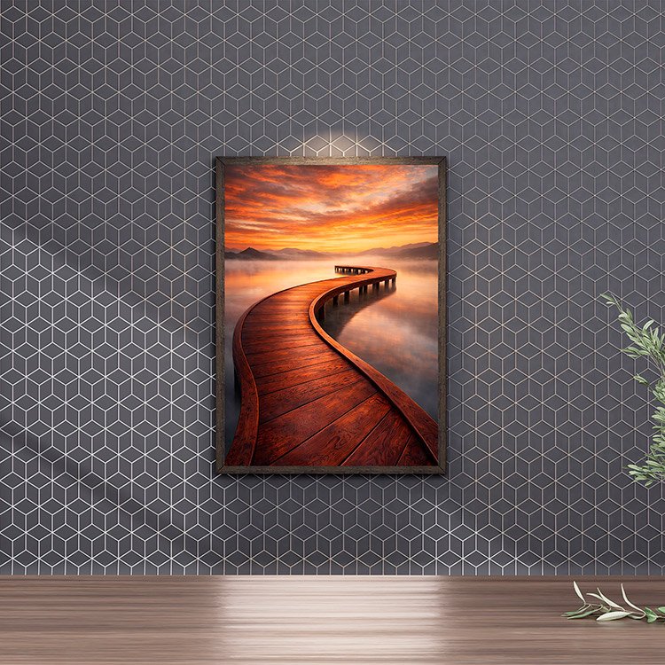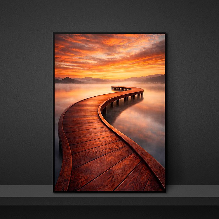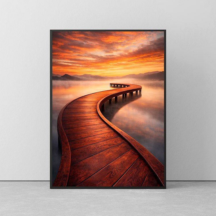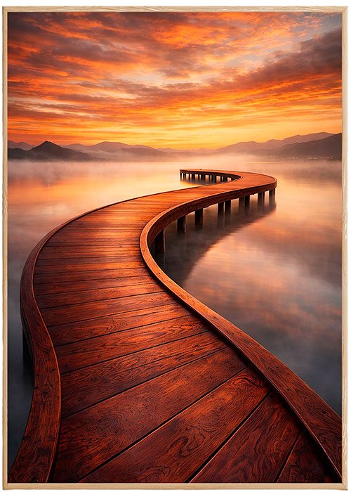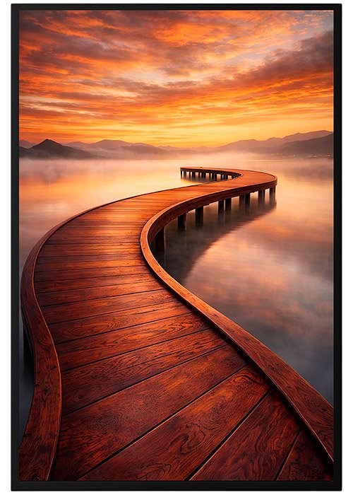 Plakat Zakręcony Pomost Zachód to ciekawa dekoracja ścienna, która świetnie sprawdzi się jako ozdoba do Twojego domu lub jako oryginalny prezent. Łatwy do oprawienia, dostępny w popularnych rozmiarach.