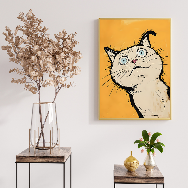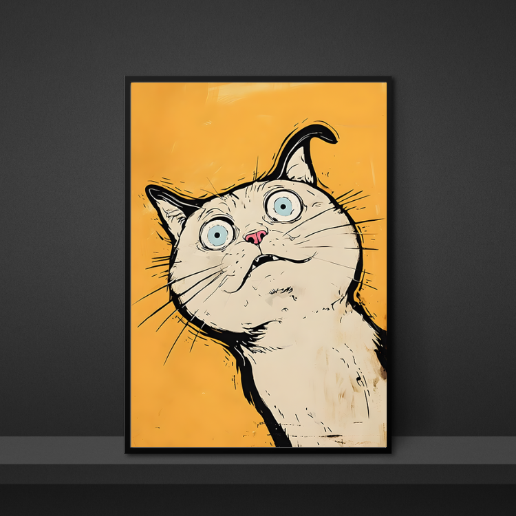 Plakat Zaskoczony Kot to połączenie estetyki, trwałości i stylu. Motyw oraz staranność wykonania sprawiają, że będzie cieszyć oko przez wiele lat i stanie się wyjątkową dekoracją w Twoim wnętrzu.