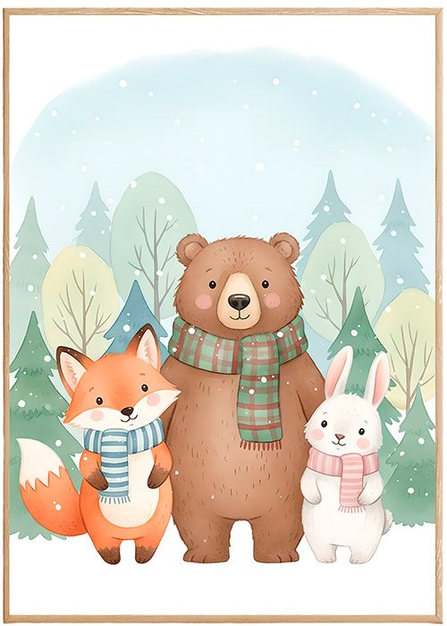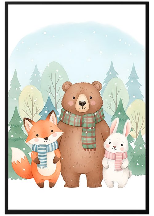 Plakat Zimowe Zwierzątka Razem