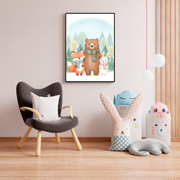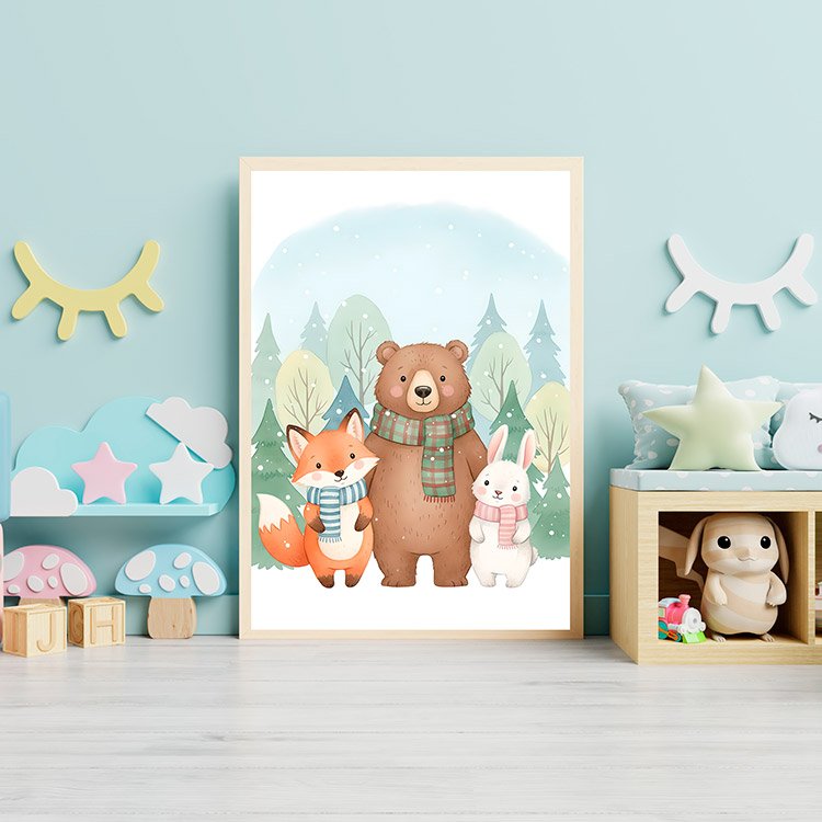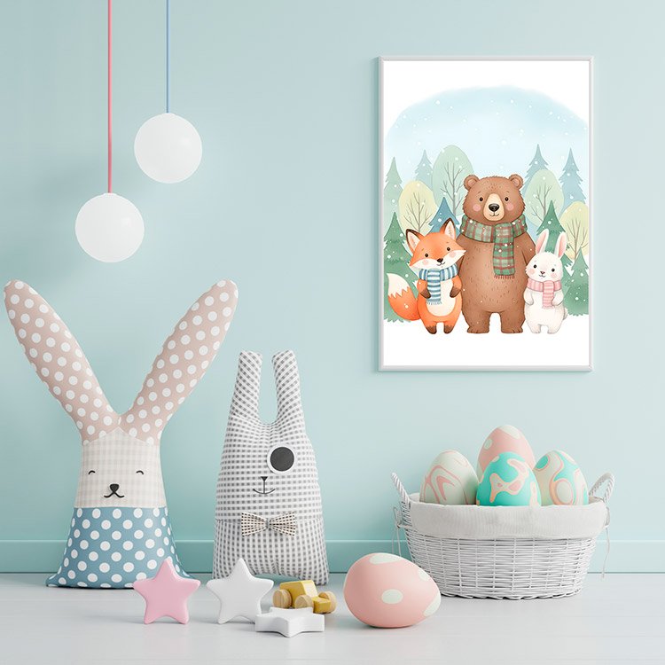 Plakat Zimowe Zwierzątka Razem to ciekawa dekoracja ścienna, która świetnie sprawdzi się jako ozdoba do Twojego domu lub jako oryginalny prezent. Łatwy do oprawienia, dostępny w popularnych rozmiarach.