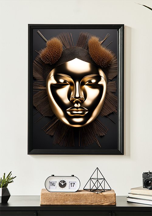 Plakat Złota dostojna maska to połączenie estetyki, trwałości i stylu. Motyw oraz staranność wykonania sprawiają, że będzie cieszyć oko przez wiele lat i stanie się wyjątkową dekoracją w Twoim wnętrzu.