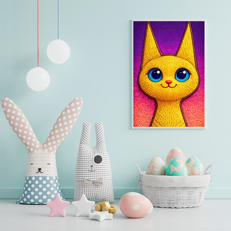 Plakat Żółty Kotek Portret to ciekawa dekoracja ścienna, która świetnie sprawdzi się jako ozdoba do Twojego domu lub jako oryginalny prezent. Łatwy do oprawienia, dostępny w popularnych rozmiarach.