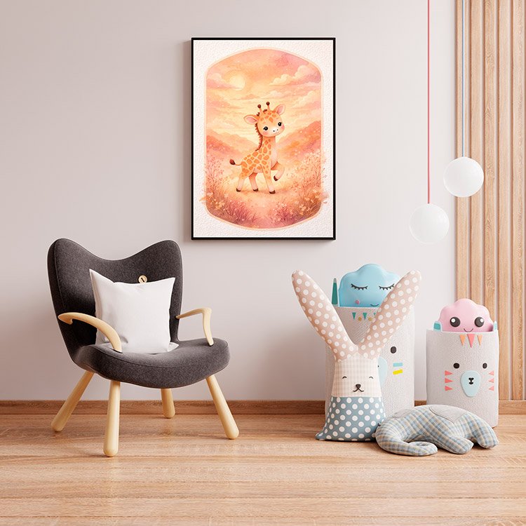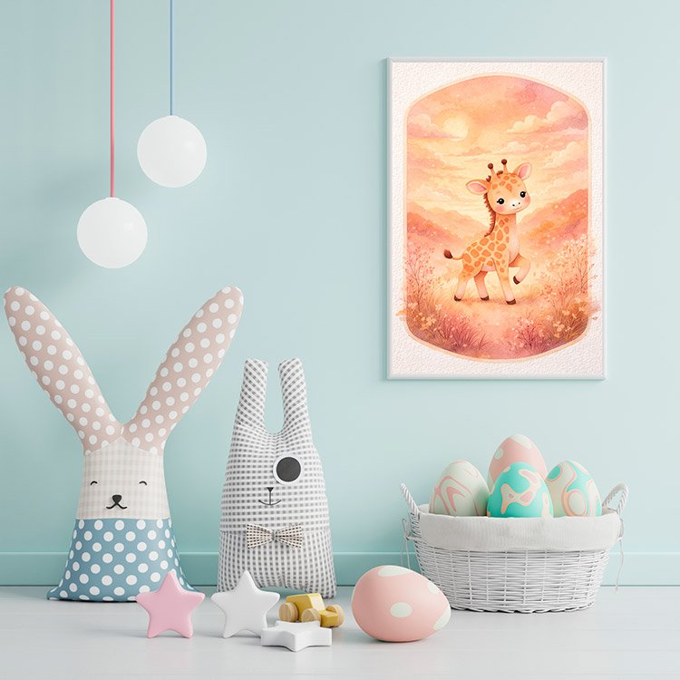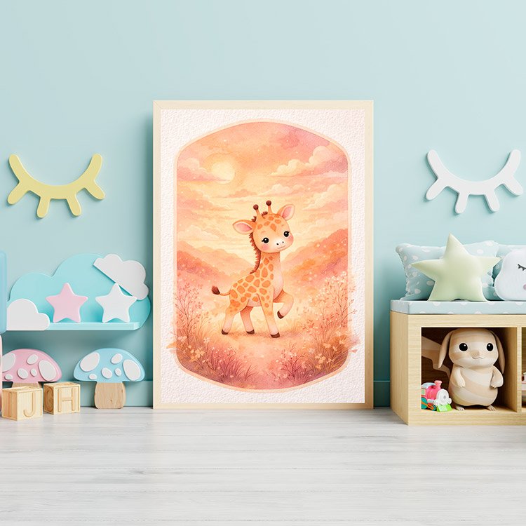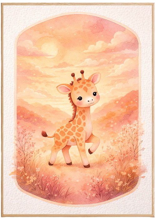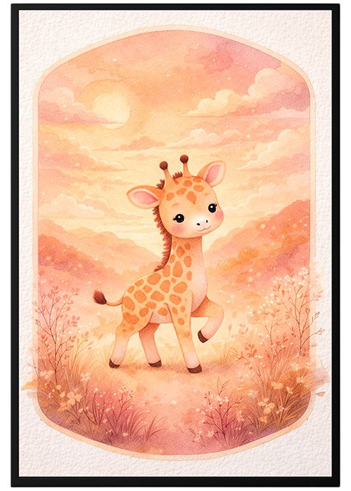 Plakat Żyrafa O Zmierzchu – Dla dzieci, Dziecięce, Z grafiką, Grafika, Papier plakatowy, Wykończenie matowe, Bez ramy