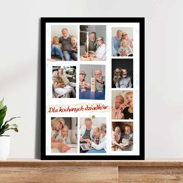 Wspólny Prezent dla Dziadków – kolaż zdjęć to personalizowany kolaż zdjęć – tworzony z myślą o ważnych chwilach i bliskich osobach. Możesz wybrać zdjęcia, dodać dedykację lub datę, aby stworzyć jedyną w swoim rodzaju kompozycję. To nie tylko dekoracja, ale też piękna historia zamknięta w kadrach. Połączenie estetyki, intensywnych kolorów i wysokiej jakości druku sprawia, że kolaż stanie się wyjątkową ozdobą wnętrza i pamiątką na długie lata.
